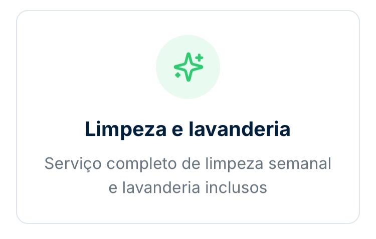 Ideal para estadias coletivas: Facilite sua rotina com nossos serviços de lavanderia e limpeza, especialmente úteis para quem fica por temporada e busca praticidade e conforto no dia a dia